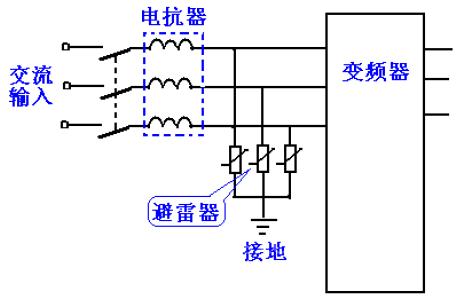 雷擊分為直擊雷和感應(yīng)雷。直擊雷是雷電直接落在雷擊物上,產(chǎn)生的破壞最大;感應(yīng)雷是雷電產(chǎn)生的電磁波在導(dǎo)體上產(chǎn)生的感應(yīng)高壓,使連接到導(dǎo)體上的電器過(guò)壓而損壞。在電網(wǎng)上,已經(jīng)安裝了多級(jí)避雷器,但前級(jí)雷電的殘存電壓或變頻器附近的雷電感應(yīng)電壓仍然會(huì)對(duì)變頻器造成破壞。