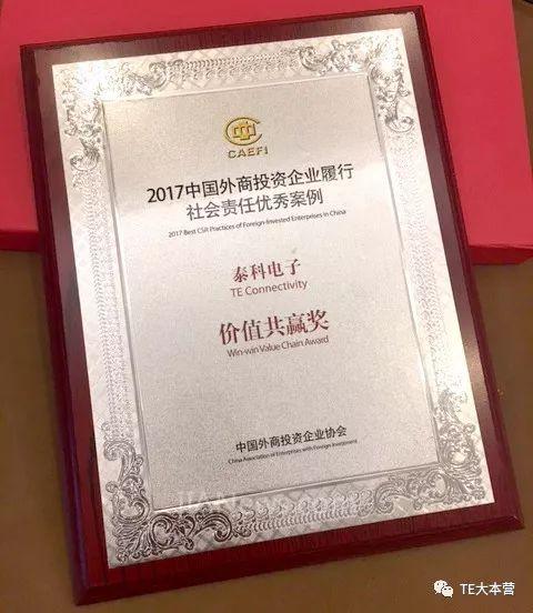 TE被授予“價(jià)值共贏獎(jiǎng)”