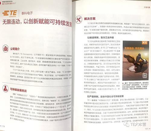 并以“無(wú)限連動(dòng),以創(chuàng)新賦能可持續(xù)發(fā)展”企業(yè)社會(huì)責(zé)任實(shí)踐入選《2017中國(guó)外商投資企業(yè)履行社會(huì)責(zé)任案例》,這也是TE連續(xù)第三年入選優(yōu)秀案例集。