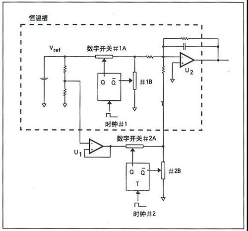 和開關(guān)電阻器型的數(shù)-模變換器相比,這種類型的數(shù)-模變換器有許多好處。這種裝置的電路實(shí)際上非常簡(jiǎn)單,使用的關(guān)鍵元件也較少,而且不需要使用大量的精密電阻器。最后,獲得可重復(fù)性的、高準(zhǔn)確度的輸出只取決于高可靠性的數(shù)字電路以及用來控制開關(guān)的時(shí)鐘的短期穩(wěn)定性。圖9-11是福祿克公司的5440B校準(zhǔn)器中使用的PWMDAC的示意圖。