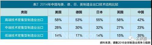 當(dāng)然,我們也必須看到,與制造業(yè)發(fā)達(dá)國家相比,我國在制造業(yè)技術(shù)升級方面還存在較大差距,未來趕超的空間還很大。以制造業(yè)出口技術(shù)結(jié)構(gòu)為例,2014年,美、德、日、英等發(fā)達(dá)國家制造業(yè)出口技術(shù)結(jié)構(gòu)都以高端技術(shù)密集型制造業(yè)為主,高端技術(shù)制造業(yè)在出口中的占比都超過50%,而中國為42%,中國與上述發(fā)達(dá)國家之間存在11%~16%的差距(參見表2)。不過,隨著我國在新興和高端制造領(lǐng)域的投入加大和發(fā)展加速,制造業(yè)在這些方面的結(jié)構(gòu)性調(diào)整將進(jìn)一步深化,并有望逐步縮小與發(fā)達(dá)國家的差距。