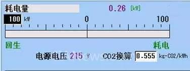 2.耗電量:顯示現(xiàn)在的瞬間耗電量及回生電量,左邊為回生電量,右邊為耗電電量,可設(shè)定監(jiān)視范圍。