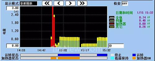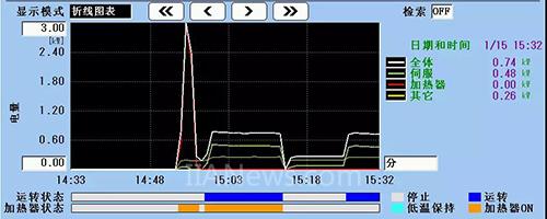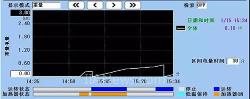 1.3加熱器ON:計(jì)算溫度控制ON后經(jīng)過(guò)測(cè)量時(shí)間的期間或者按下停止按鈕之前期間的耗電量.