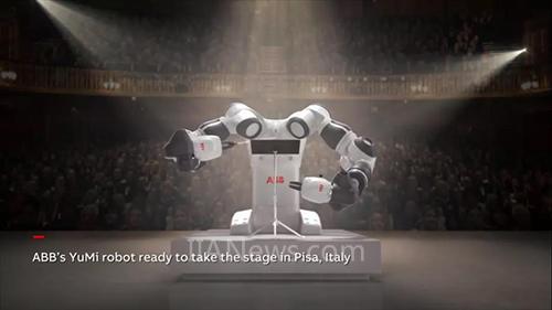 ABB機(jī)器人YuMi首次擔(dān)任歌劇指揮,在意大利比薩的威爾第歌劇院與世界著名男高音安德烈·波切利 、女高音瑪利亞·博爾西同臺(tái)演繹經(jīng)典歌劇。