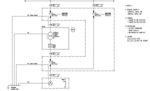 其中K2、K3之間采用機(jī)械互鎖裝置,不僅滿足設(shè)備的安全穩(wěn)定運(yùn)行要求,也保證了人員操作的安全,K1為變頻器高壓輸入側(cè)刀閘,K2為變頻器直接輸出到電機(jī)的刀閘,K3為工頻運(yùn)行旁路刀閘;