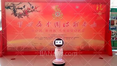 新松機器人“旺旺”作為演員來到詩歌春晚現場