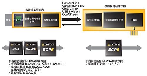 除了常見工業(yè)攝像頭應(yīng)用之外,機(jī)器視覺(工業(yè)領(lǐng)域里更專業(yè)的攝像頭應(yīng)用)也可受益于ECP5 FPGA提供的互連和協(xié)處理能力。圖2中的框圖展示了FPGA可在常見的工業(yè)機(jī)器視覺系統(tǒng)中發(fā)揮的多種作用。在攝像頭應(yīng)用領(lǐng)域,F(xiàn)PGA可用于實(shí)現(xiàn)傳感器橋接、完整的攝像頭ISP或定制功能來幫助系統(tǒng)設(shè)計(jì)工程師實(shí)現(xiàn)差異化的終端產(chǎn)品。對(duì)于圖像采集卡而言,像ECP5一樣的FPGA還可以解決視頻接口問題和實(shí)現(xiàn)圖像處理功能。