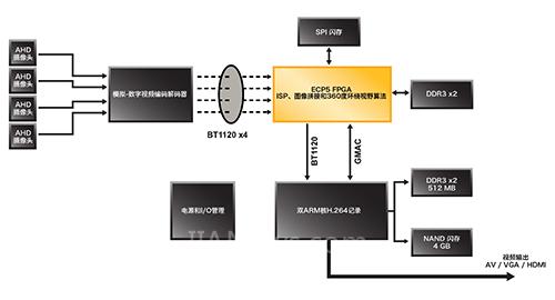 圖6:展示了開發(fā)工程師如何使用單個(gè)ECP5 FPGA實(shí)現(xiàn)從前需要使用多個(gè)ARM處理器的鳥瞰系統(tǒng)