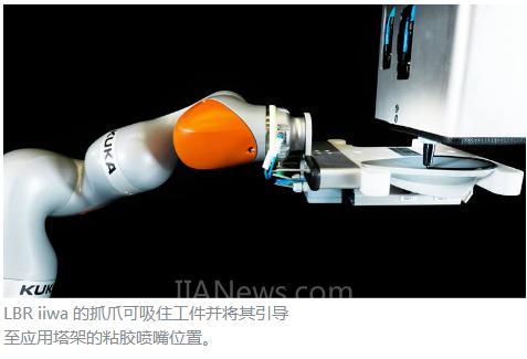KUKA輕型機(jī)器人在粘接過(guò)程中為工人提供支持