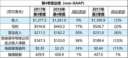 安森美半導(dǎo)體發(fā)布2017年第4季度及全年業(yè)績(jī)