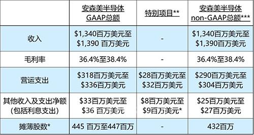 下表概列安森美半導(dǎo)體2018年第1季度的 GAAP 及 non-GAAP 展望。