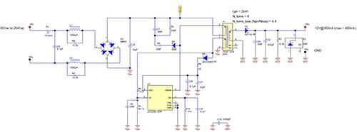 采用UCC28910的0.35A隔離式一次側(cè)回授馳返的12V電壓參考設(shè)計(jì)是一個(gè)緊密且符合成本效益的通用交流輸入電壓,在4.2W條件下能夠通過(guò)UCC28910變?yōu)?2V。
