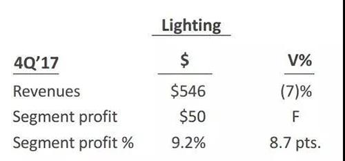 GE上月末公開了其2017年第四季度的財(cái)報(bào)。從報(bào)表上看,GE四季度的整體收入下降了5%。其中,照明業(yè)務(wù)的收入下降了7%,從2016年第四季度的5.84億美元下滑至5.46億美元。