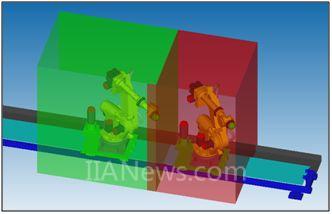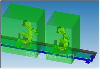 近年來,隨著工業(yè)自動化的快速發(fā)展,機器人在工業(yè)領域的應用越來越廣泛,在搬運、裝配等應用中,導軌機器人已成為了一種提高機器人使用率的方式,導軌機器人、單導軌多機器人的使用也越來越廣泛。由此也引發(fā)了多臺機器人在同一導軌上工作時的安全性問題,當前常用的解決方案是多機器人之間通過空間位置、邏輯關系判斷來解決,但是,這樣還是不能完全解決多機器人之間可能產生的干涉問題。針對這樣的難題,FANUC開發(fā)了多機器人導軌干涉檢測功能,可以很好地解決該問題。