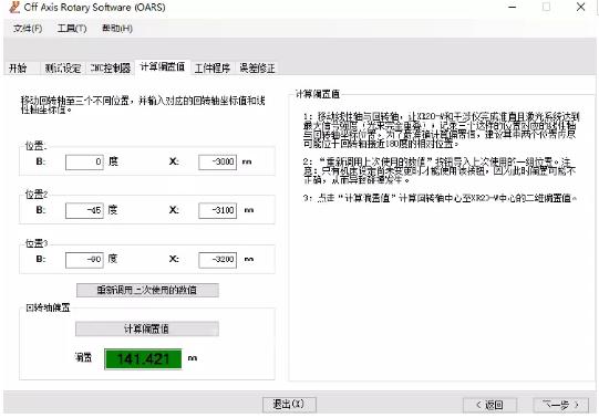 3.輸入準(zhǔn)直光路記錄的三個(gè)位置機(jī)械坐標(biāo)值,軟件會(huì)自動(dòng)運(yùn)算出B軸偏置量。