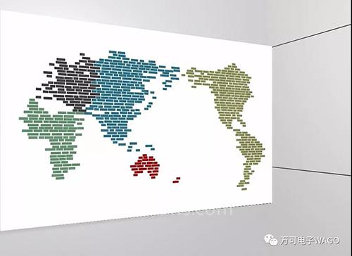 當(dāng)你走進(jìn)WAGO萬(wàn)可展臺(tái),主背景墻上的世界地圖肯定不能錯(cuò)過,由紅、藍(lán)、灰、綠等各種顏色近5000個(gè)接線端子為大家拼出了一個(gè)象征著WAGO萬(wàn)可的端子世界。