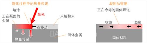 當(dāng)激光熔化粉末層時(shí),如果粉末層下方為固體金屬,則熱量會(huì)從熔池傳遞至下方結(jié)構(gòu),這會(huì)再次熔化部分固體金屬并形成牢固的焊接。隨著激光源移開(kāi),熔池也將快速凝固,因?yàn)闊崃恳驯挥行鬟f出去。
