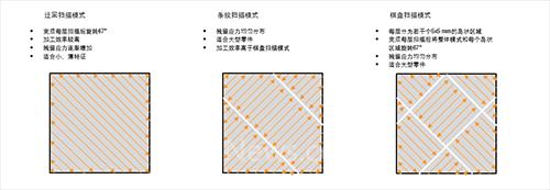 上圖 — 掃描策略與適合它們的不同零件類(lèi)型。兩種最常見(jiàn)的掃描策略分別是用于薄壁零件的“迂回”掃描(也稱為光柵掃描),及用于具有較厚截面的零件的“條紋”掃描?!捌灞P(pán)”或“島狀”掃描策略也同樣有效。條紋和棋盤(pán)掃描可縮短各掃描線的長(zhǎng)度,減少殘留應(yīng)力的累積。