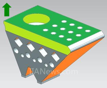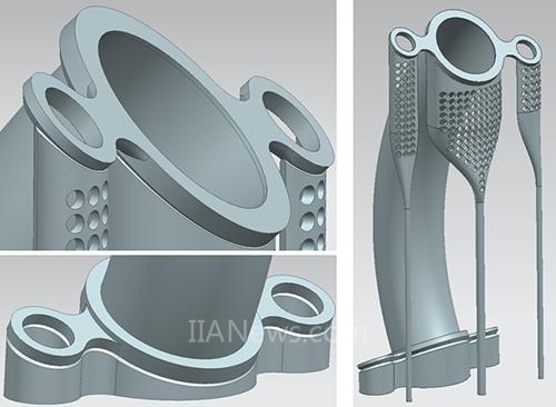 在設(shè)計(jì)階段重新評(píng)估零件時(shí)已將擺放方向考慮在內(nèi),因此,很顯然該零件在進(jìn)行增材制造加工時(shí)只有一個(gè)擺放方向?,F(xiàn)在要針對(duì)后期加工重新設(shè)計(jì)橫向孔等細(xì)節(jié):