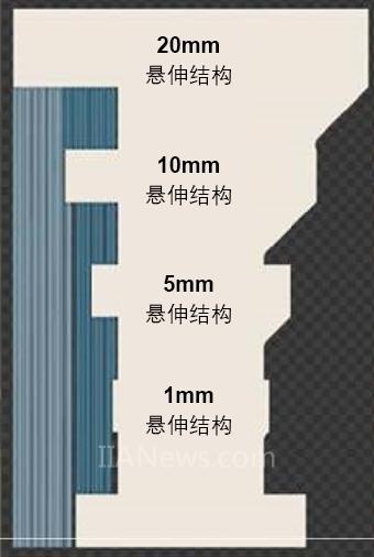 雖然0.3 – 1 mm的水平懸伸結(jié)構(gòu)可采用自身支撐,但是不建議這樣做。而超過(guò)1 mm的懸伸結(jié)構(gòu)則必須要重新設(shè)計(jì)或?yàn)槠涮砑又巍?稍诮M件中添加圓角和倒角以消除懸伸結(jié)構(gòu)(如圖中右側(cè)所示)。