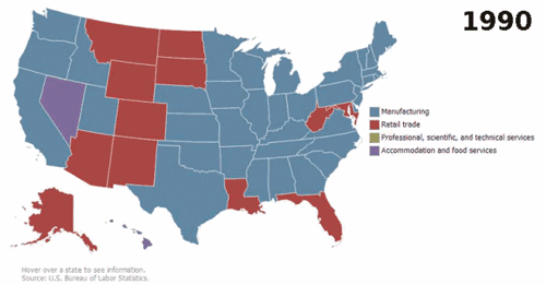 2015年美國的制造業(yè)(藍色部分)已經(jīng)很少: