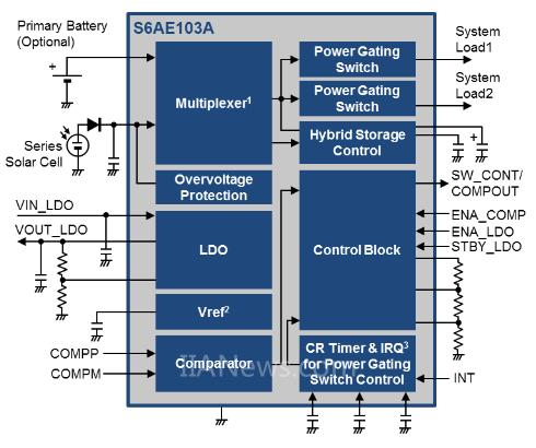 圖 3:用于能量收集的S6AE103A PMIC 器件框圖