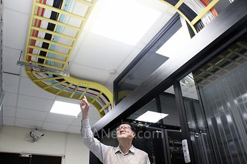 具有電機(jī)技師執(zhí)照的林克偉,還針對空調(diào)控制接點(diǎn)的特殊需求做調(diào)整,確保萬一宕機(jī)時冷氣仍得以正常運(yùn)作,避免服務(wù)器過熱;此外昔日高架地板下方線纜就像炒米粉一樣糾纏成一團(tuán),一出事光清查就得耗上幾個小時,新機(jī)房為改善配線系統(tǒng)雜亂問題,線纜改走天花板,且依顏色來區(qū)分用途,給人一目了然。