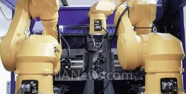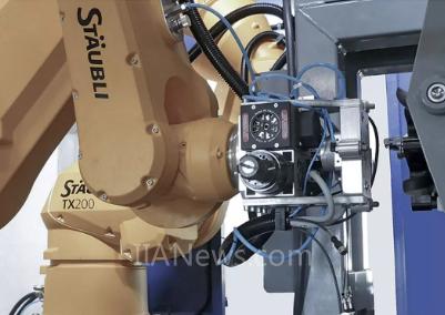 為使整個(gè)加工過(guò)程實(shí)現(xiàn)全自動(dòng),Ultratech又集成了另一臺(tái)史陶比爾六軸RX160機(jī)器人,負(fù)責(zé)工件進(jìn)一步精加工,并利用壓縮空氣吹掃清潔,確保無(wú)任何殘留削屑。隨后機(jī)器人抓取激光打標(biāo)筆及氣動(dòng)夾具,在成品車(chē)頂架刻上序列號(hào)。最后一道工序內(nèi),精加工后的成品回到系統(tǒng)上下料區(qū)域,由操作人員手動(dòng)下料。