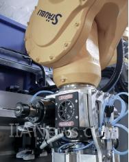 兩臺(tái)機(jī)器人配備同樣的刀具頭,各帶2個(gè)銑軸,在工件兩端并行工作。較大的13mm銑刀用于粗切,較小的6mm銑刀用于精修。