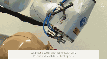 KUKA LBR Med 可用于手術(shù)影像導(dǎo)引、微創(chuàng)手術(shù)等醫(yī)療領(lǐng)域,由外科醫(yī)生控制整體局面,它按照輸入指令在患者身上操作。