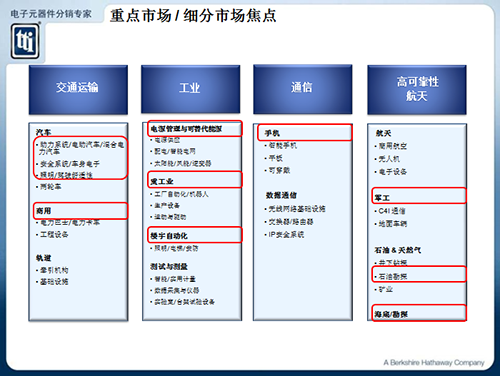 覆蓋全球的分銷(xiāo)網(wǎng)絡(luò)。在北美、歐洲和亞洲,TTI擁有超過(guò)130萬(wàn)平方英尺的自動(dòng)化倉(cāng)庫(kù),亞太區(qū)主要有3個(gè),分別分布在上海外高橋保稅區(qū)、香港和新加坡。這些自動(dòng)化倉(cāng)庫(kù)統(tǒng)一由TTI獨(dú)有的、經(jīng)過(guò)特殊設(shè)計(jì)的全球中央倉(cāng)庫(kù)管理系統(tǒng)控制,確保能為全球各地的客戶提供優(yōu)質(zhì)服務(wù)并提高總體業(yè)務(wù)效率。