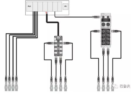 ■ 多個傳感器通過一個被動式分線盒與PLC連接