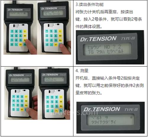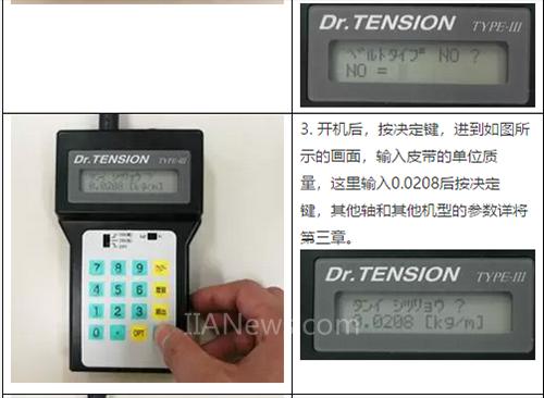 每一臺(tái)機(jī)器人有三根皮帶要測(cè)量,需要三組條件。一個(gè)一個(gè)輸入會(huì)比較繁瑣,這里使用張力計(jì)的測(cè)定條件的保存功能(最多10組條件,NO:1-10)。