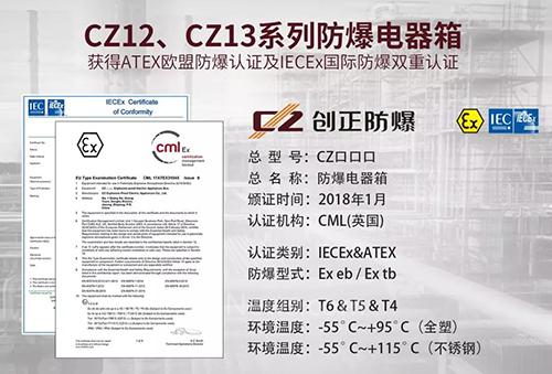 創(chuàng)正防爆全塑、不銹鋼系列防爆電器箱獲得ATEX歐盟防爆認(rèn)證及IECEx國際防爆雙重認(rèn)證