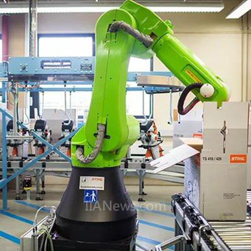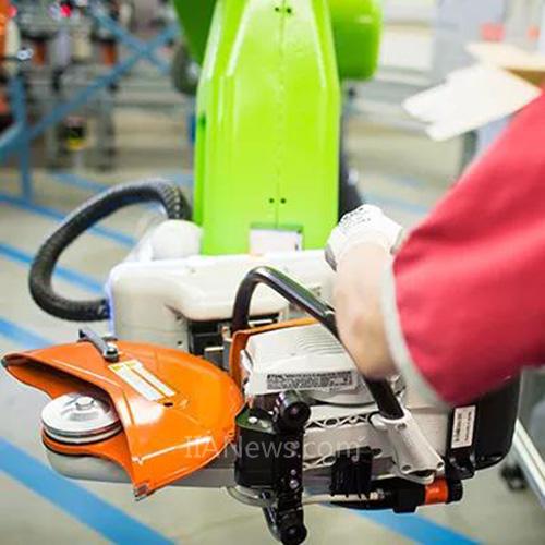 雖然STIHL工廠自動(dòng)化程度很高,但在后段的產(chǎn)品檢測(cè)和裝箱環(huán)節(jié),都需要人工完成。單臺(tái)電鋸的重量達(dá)到了10公斤,每位工人每班次需要累計(jì)搬運(yùn)8噸的重量,工作強(qiáng)度很大。為了改變這一現(xiàn)狀,不久前,STIHL在其電鋸產(chǎn)品的包裝線引入了FANUC CR-35iA協(xié)作機(jī)器人。