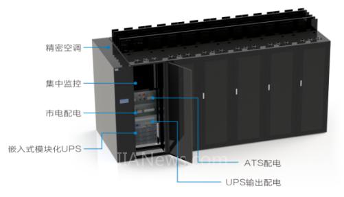 此次項目采用的是中型威智微模塊數(shù)據(jù)中心解決方案,包含了模塊化機架式UPS、列間空調、精密配電系統(tǒng)、動環(huán)監(jiān)控系統(tǒng),鉛酸蓄電池、機柜等。所有部件遵循國內(nèi)、國際標準化生產(chǎn)標準,保證產(chǎn)品質量;數(shù)據(jù)中心精密配電和制冷系統(tǒng)按照國際A級機房設計(國際標準Tier IV級別);UPS供電采用模塊化N+X冗余設計;集成智能監(jiān)控系統(tǒng),確保機房運營的安全可靠;采用列間空調制冷,封閉制冷空間實現(xiàn)就近精確制冷,極大的提升了制冷效率,與傳統(tǒng)機房比較可節(jié)能25%以上。且產(chǎn)品標準化、模塊化、即插即用,安裝便捷,大大縮短業(yè)務上線周期。