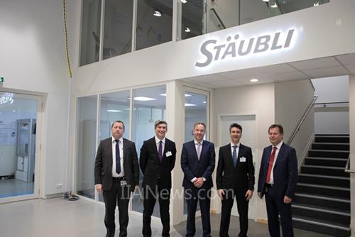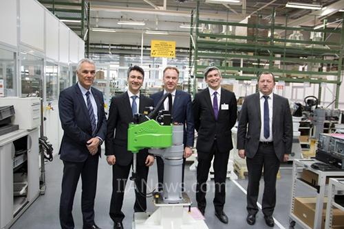 從左到右分別是: Jean-Marc Dalmasso,史陶比爾(法韋熱)業(yè)務(wù)部門副總經(jīng)理;Andrea Barbolini,施耐德電氣解決方案管理、機(jī)器解決方案副總裁;Gerald Vogt,史陶比爾機(jī)器人集團(tuán)部門經(jīng)理;Ali Haj Fraj,施耐德電氣工業(yè)事業(yè)部機(jī)器解決方案全球高級(jí)副總裁;Yves Gelon,史陶比爾(法韋熱)機(jī)器人部門經(jīng)理