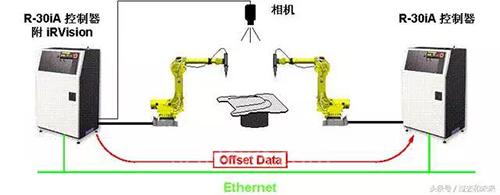 通過(guò)此功能,未附有 iRVision 視覺(jué)系統(tǒng)的機(jī)器人可以通過(guò)網(wǎng)絡(luò)調(diào)用附有 iRVision 視覺(jué)系統(tǒng)的機(jī)器人的偏移檢測(cè)數(shù)據(jù)。