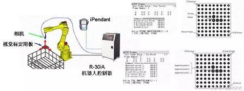 坐標(biāo)系設(shè)置的另一種功能:通過(guò)視覺(jué)設(shè)置一個(gè)與視覺(jué)標(biāo)定板對(duì)等的用戶坐標(biāo)系。通過(guò)裝置在機(jī)器人手爪末端的相機(jī),用戶坐標(biāo)系UF設(shè)置在視覺(jué)標(biāo)定板的原點(diǎn)位置(四點(diǎn)法),或當(dāng)視覺(jué)標(biāo)定板裝置在機(jī)器人手爪末端,則工具坐標(biāo)系UT設(shè)置在視覺(jué)標(biāo)定板的原點(diǎn)位置(六點(diǎn)法)。