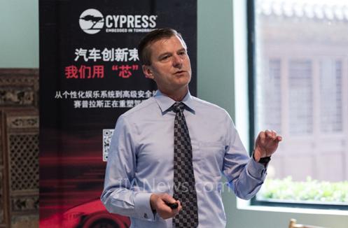 賽普拉斯全球應(yīng)用及銷售執(zhí)行副總裁邁克?貝羅為到場媒體做演講