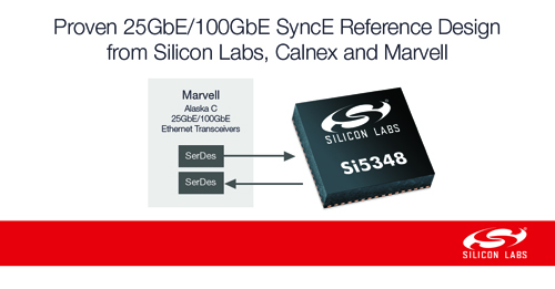 Silicon Labs(亦稱 “芯科科技”,NASDAQ: SLAB)和Calnex Solutions今日聯(lián)合宣布,針對ITU-T G.8262標準兼容的25G和100G以太網(wǎng)速率同步以太網(wǎng)(SyncE)應用推出經(jīng)驗證過的參考設計。該解決方案基于Marvell? Alaska? C系列高速以太網(wǎng)收發(fā)器、Silicon Labs Si5348低抖動網(wǎng)絡同步時鐘和Calnex Paragon-100G測試平臺。
