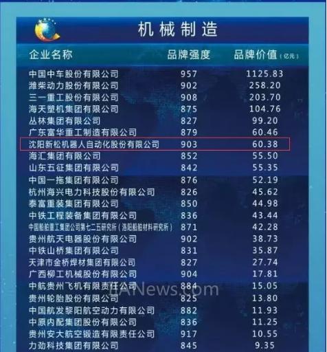 2018年5月9日,由國家市場監(jiān)督管理總局指導(dǎo),中國品牌建設(shè)促進(jìn)會(huì)、經(jīng)濟(jì)日報(bào)社、中國國際貿(mào)易促進(jìn)委員會(huì)、中國資產(chǎn)評(píng)估協(xié)會(huì)等單位聯(lián)合舉辦的“2018中國品牌價(jià)值評(píng)價(jià)信息發(fā)布”活動(dòng)在上海舉行。活動(dòng)發(fā)布了總共718個(gè)品牌的品牌價(jià)值。新松憑借著以創(chuàng)新為驅(qū)動(dòng)力、以責(zé)任和價(jià)值承接品牌重量的特有發(fā)展模式,在短短的時(shí)間內(nèi),實(shí)現(xiàn)社會(huì)價(jià)值和經(jīng)濟(jì)價(jià)值的跨越式增長,成就品牌價(jià)值再創(chuàng)新高。新松最新的品牌強(qiáng)度903,品牌價(jià)值60.38億元,位列機(jī)械制造板塊前茅,是唯一入選該榜單的機(jī)器人企業(yè)。