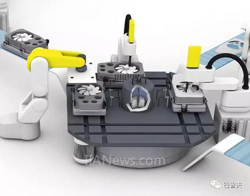 在轉(zhuǎn)臺(tái)上常常在不同工位上執(zhí)行不同的工作步驟。通過傳感器能探測(cè)工件在旋轉(zhuǎn)轉(zhuǎn)臺(tái)上的正確位置。并借助非接觸式傳輸系統(tǒng)將信號(hào)傳輸?shù)絇LC。