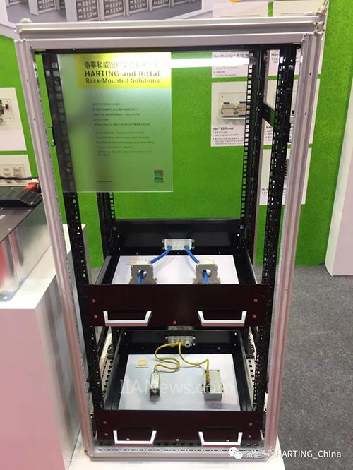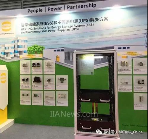 浩亭與威圖的聯(lián)手是此次展會的一大亮點。該方案采用經(jīng)過測試的威圖RiLine 60毫米母線系統(tǒng)技術(shù),作為主體框架的威圖TS 8機柜承載能力高達1400千克,浩亭Han-Modular?模塊化連接器可以簡便靈活與之對接,配置。方案中的控制和監(jiān)測,和通訊部分,則分別采用了浩亭傳感器解決方案和以太網(wǎng)解決方案。機架式解決方案配置靈活性高,適用于幾乎所有的電池模塊。
