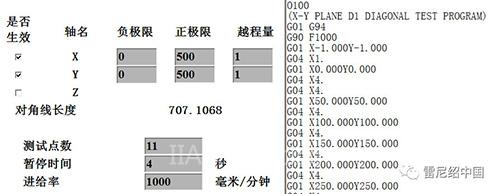 如:X行程0-500,Y行程0-500,則兩條對(duì)角線移動(dòng)兩個(gè)方向?yàn)?D1、D2),實(shí)際移動(dòng)的起點(diǎn)和終點(diǎn)為D1:(X0,Y0-X500,Y500)、D2:(X500,Y0-X0,Y500)