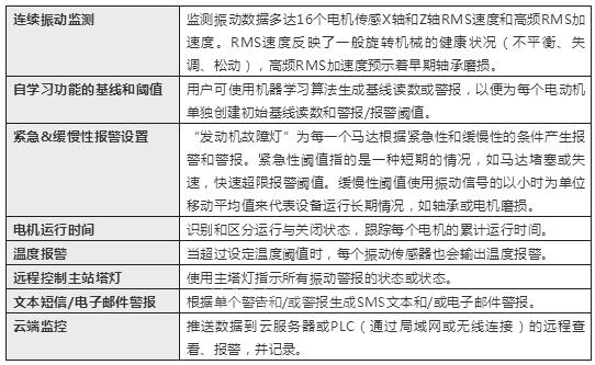 邦納的無線振動及溫度傳感器不斷監(jiān)視旋轉(zhuǎn)設(shè)備上的RMS速度、高頻加速度和溫度,但僅在設(shè)備運行時使用振動數(shù)據(jù)。DXM無線控制器采集數(shù)據(jù)的趨勢和進行分析;可通過設(shè)置工具中腳本編譯來設(shè)置緊急性或者慢性報警閾值。DXM無線控制器可以采集和推送使用機器學習基于速度的均方根值算法來定義報警閾值和設(shè)置限制終端用戶互動警報控制范圍從而創(chuàng)建一個個用于當單臺旋轉(zhuǎn)設(shè)備檢測用的類似汽車儀表盤上的“發(fā)動機故障燈”的報警輸出。各項數(shù)據(jù)和警報可以通過無線控制器主機傳送或可以采用IIOT物聯(lián)網(wǎng)功能進行推送云端。
