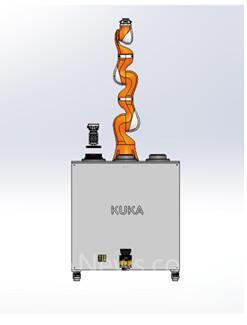 庫(kù)卡柔性系統(tǒng)(上海)有限公司(展位號(hào):E3-J03)展示的是變速箱齒圈外轂裝配。在該展示項(xiàng)目中,iiwa機(jī)器人將齒圈從支架上夾取,安裝放置到外轂內(nèi)。齒圈裝入外轂要求安裝精度較高,此展示可以體現(xiàn)出iiwa的靈活性和精確度。中間支架上的齒圈用于人手抓取放入外轂中,便于觀眾理解人工裝配難度,更能體現(xiàn)iiwa機(jī)器人在裝配作業(yè)時(shí)的優(yōu)勢(shì)。展示臺(tái)前后安裝有兩個(gè)sick傳感器,當(dāng)觀眾走入傳感器檢測(cè)范圍內(nèi)時(shí),機(jī)器人會(huì)接收到信號(hào),繼而動(dòng)作放緩,由此保障操作的安全性。