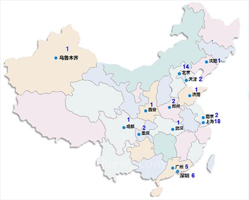 圖1:2018年自動化相關展會地區(qū)分布(部分)