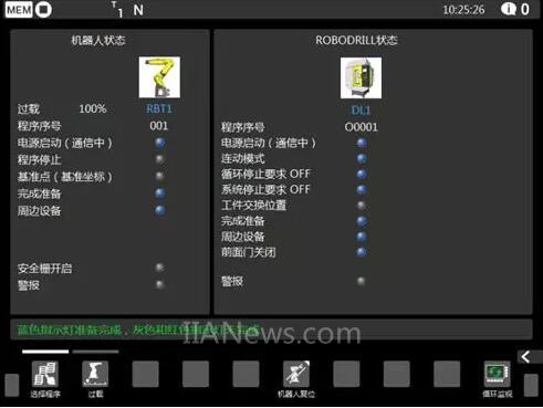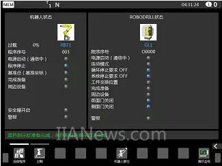 e)在系統(tǒng)啟動畫面時按[周期監(jiān)視器]軟件,可顯示出周期性監(jiān)視器畫面??芍庇^地確認(rèn)機(jī)器人和ROBODRILL的運(yùn)行狀態(tài)。