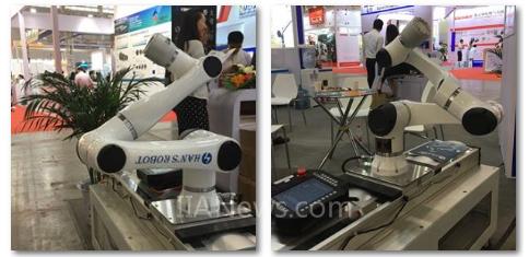 大族機(jī)器人此次重點(diǎn)展出的Elfin機(jī)械手是一款集減速機(jī)、電機(jī)、編碼器以及驅(qū)動控制于一體的協(xié)作型六軸機(jī)器人,由一個驅(qū)動器控制兩個關(guān)節(jié),令關(guān)節(jié)模組高度集成化,高力矩密度、低齒槽力的力矩電機(jī)設(shè)計與驅(qū)動器完美配合,為機(jī)器人系統(tǒng)提供優(yōu)秀性能和平穩(wěn)性。該機(jī)械手采用輕型設(shè)計,含Elfin10、Elfin5和Elfin3三個系列,其中,Elfin5的最高負(fù)載為5Kg,自重僅為23Kg,有效工作半徑800MM,重復(fù)精度能夠達(dá)到±0.05mm,采用EtherCAT 通訊標(biāo)準(zhǔn)協(xié)議。支持任意角度安裝,裝配快捷,控制簡單。Elfin機(jī)械手為人機(jī)協(xié)作機(jī)械手,帶安全控制功能,可用于集成自動化產(chǎn)品線、焊接、打磨、裝配、搬運(yùn)、拾取、噴漆等工作場合。